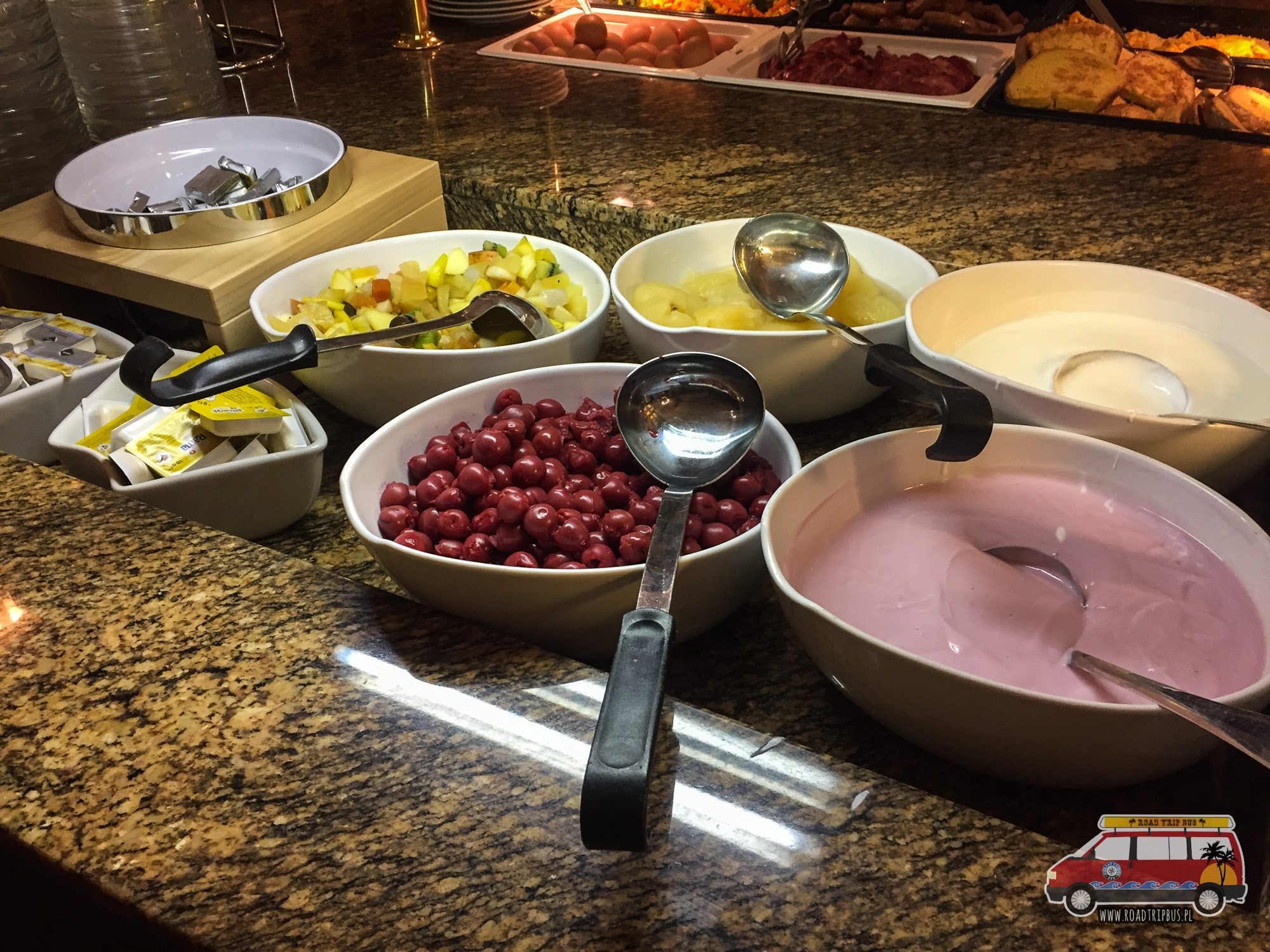 Do jedzenia dostępne były między innymi jajka sadzone, jajecznica, jajka gotowane na twardo, sery, wędliny, smażony bekon, kiełbaski po wiedeńsku, pasta z makreli, pasta jajeczna, sałatki, owoce, jogurty, mleko, płatki owsiane, płatki śniadaniowe, bakalie, a także ciasta i słodkie bułki. Ponadto, istniała możliwość przygotowania jajecznicy czy omletu na życzenie gości (bezpłatnie).
