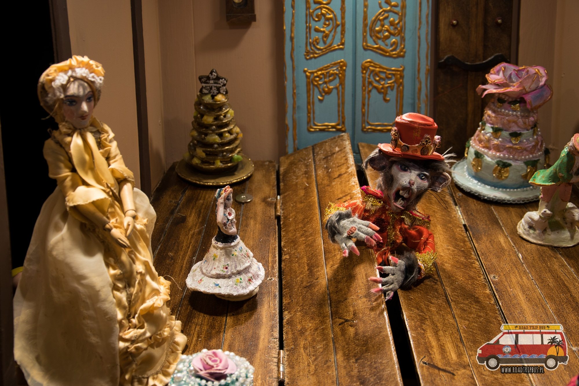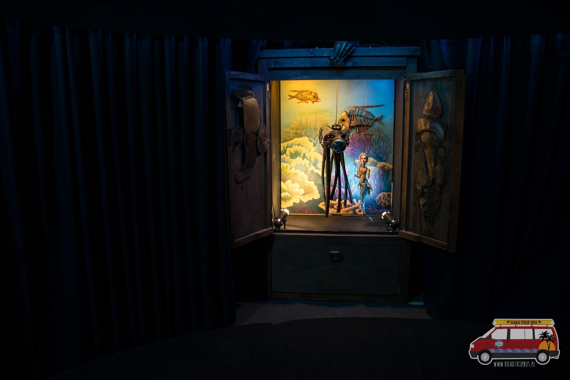 W małym teatrze odgrywane są trwające około 30 minut spektakle. Zwiedzający mają do wyboru trzy pozycje – Małą Syrenkę, Dziadka do Orzechów i Krawca Niteczkę. Wszystkie trzy spektakle tworzone są inną techniką. Mała Syrenka odgrywana jest za pomocą tzw. marionetek sycylijskich (ich ruch odbywa się za pomocą drutów wbitych w głowę i korzystania z bezwładności pozostałych członków). W Dziadku do Orzechów wykorzystywane są lalki stolikowe, zaś w Krawcu Niteczce kukły.