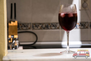 Dodajemy jedną część (ok. 100 ml) taniego czerwonego wytrawnego wina.Oczywiście można użyć również wina droższego, mija się to jednak z celem, bo nie będzie miało to wpływu na smak. Pamiętajcie jednak, że tanie hiszpańskie wina są lepsze od tych dostępnych w Polsce.Myślę, że minimalna cena butelki wina do takiego drinka powinna wynosić w Polsce przynajmniej 10 zł. Wino powinno być czerwone i wytrawne. W sklepie warto zwrócić się więc w kierunku np. win mołdawskich, które zazwyczaj mają dość dobrą jakość i są tanie.