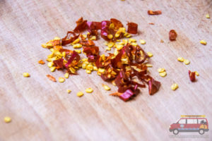 Papryczki piri-piri myjemy i drobno kroimy. Łącznie z pestkami dodajemy je do sosu.Liczba papryczek piri-piri będzie decydować o ostrości sosu. Na każde 100 gramów majonezu używam 2 papryczek piri piri.