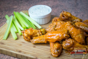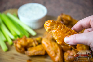 Nasze buffalo wings są gotowe! Jako dodatek najczęściej podawany jest do nich dip blue cheese oraz seler naciowy pokrojony w 6-8 centymetrowe kawałki.
