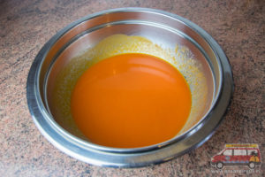 Przelewamy masło do dużej metalowej miski, a następnie wlewamy około 75 mililitrów sosu cayenne i wszystko dokładnie mieszamy do uzyskania jednolitej konsystencji.