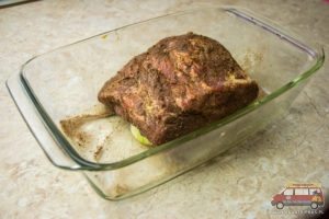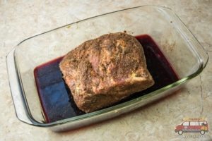 Mięso przekładamy do naczynia żaroodpornego i z każdej strony nacieramy je mieszanką przypraw. Jeśli część przypraw spadnie, nic złego się nie dzieje.